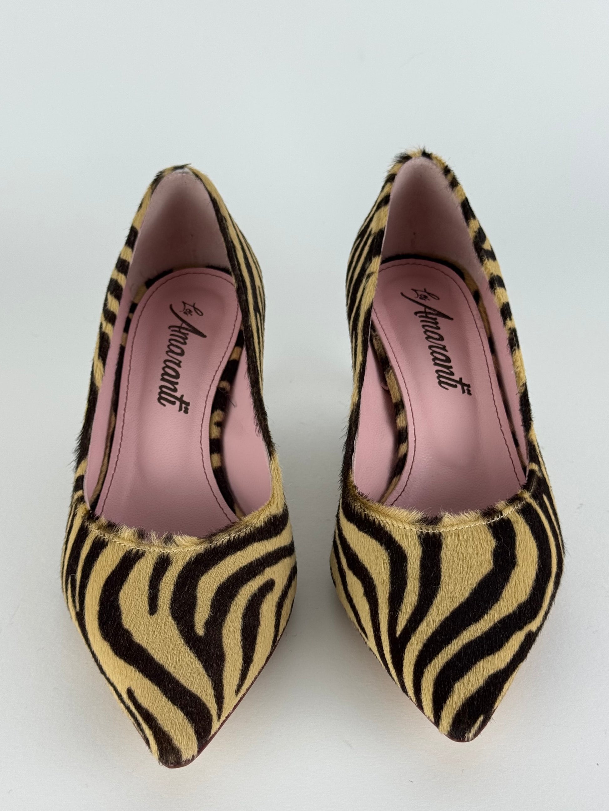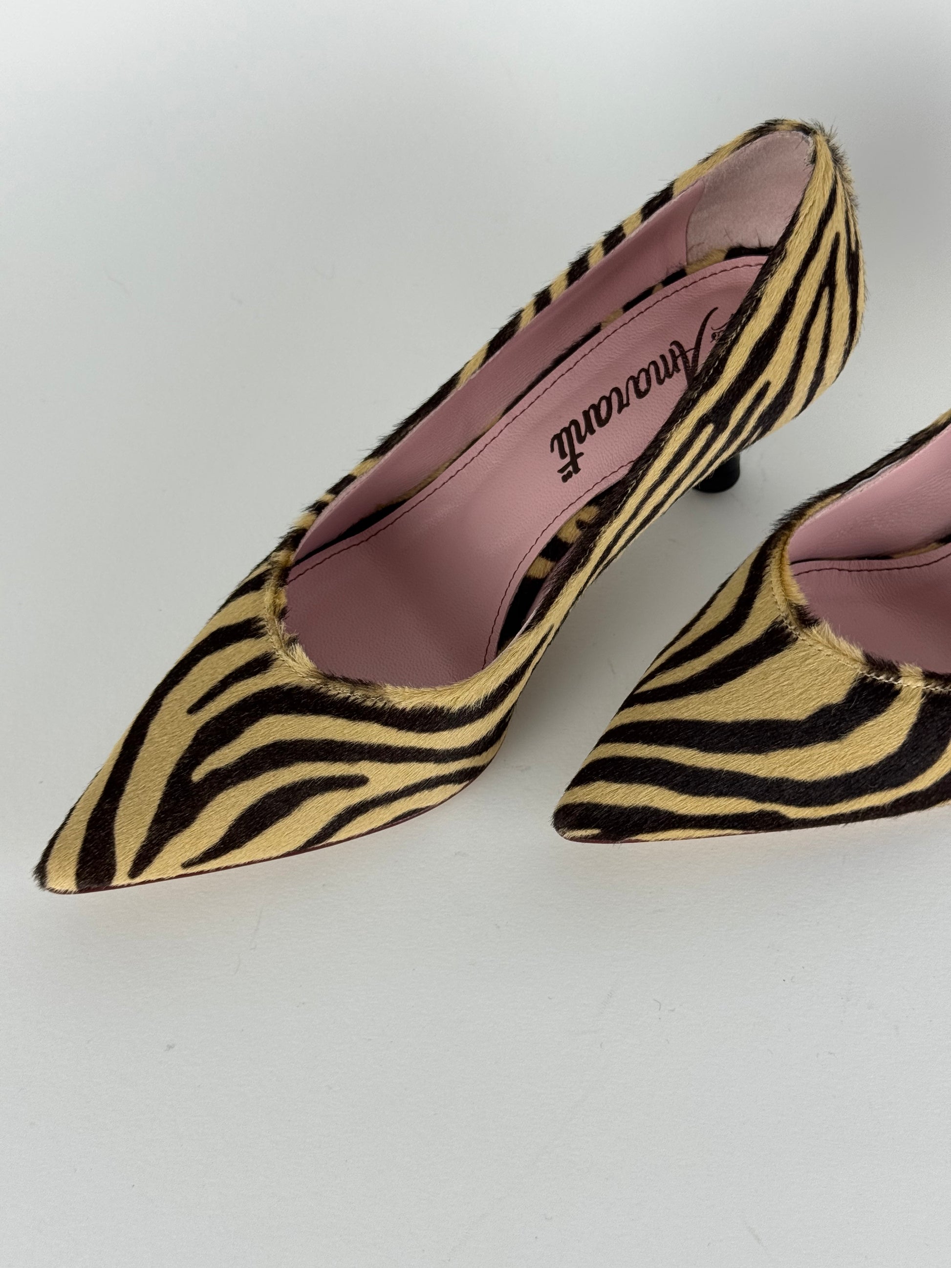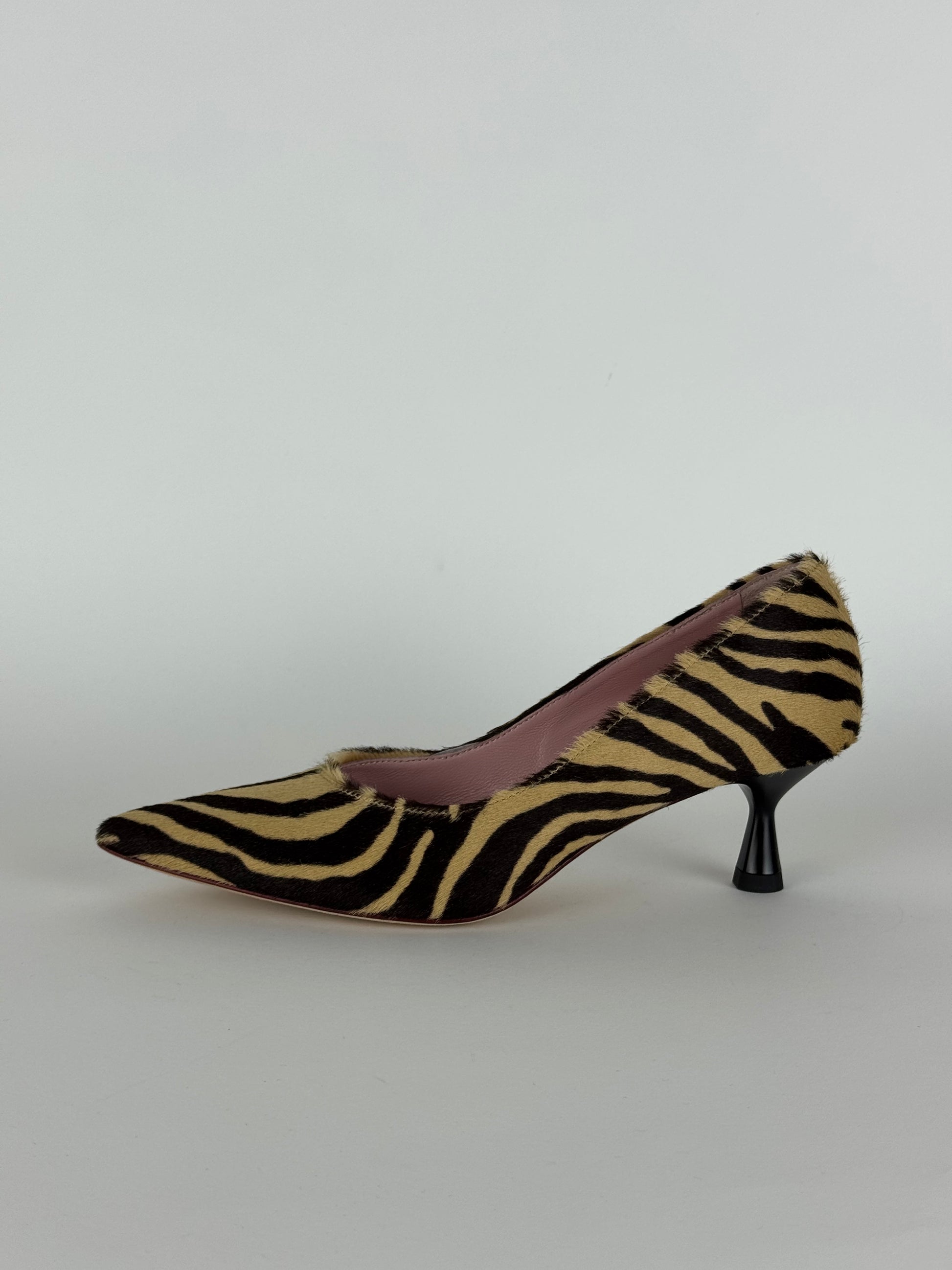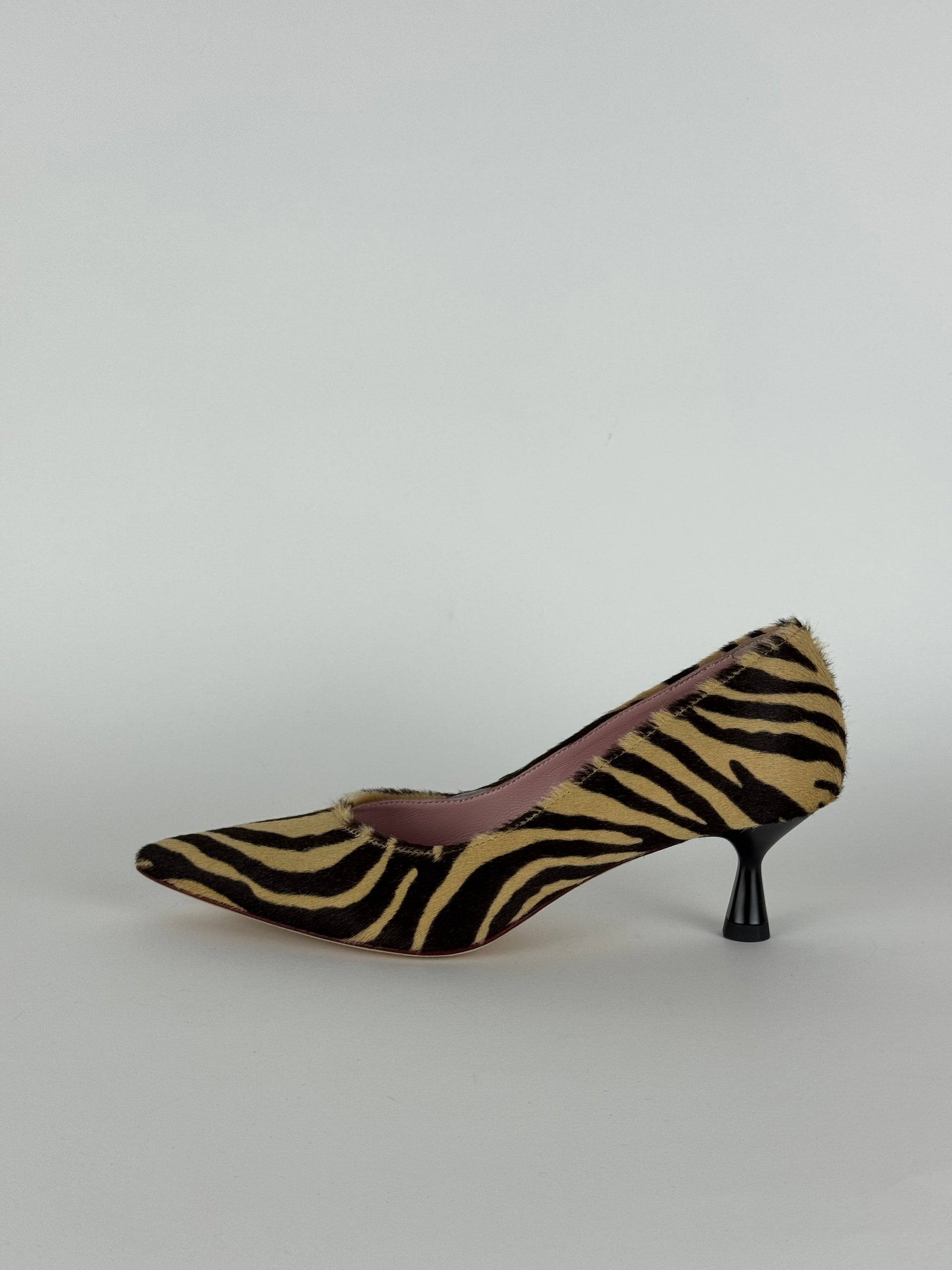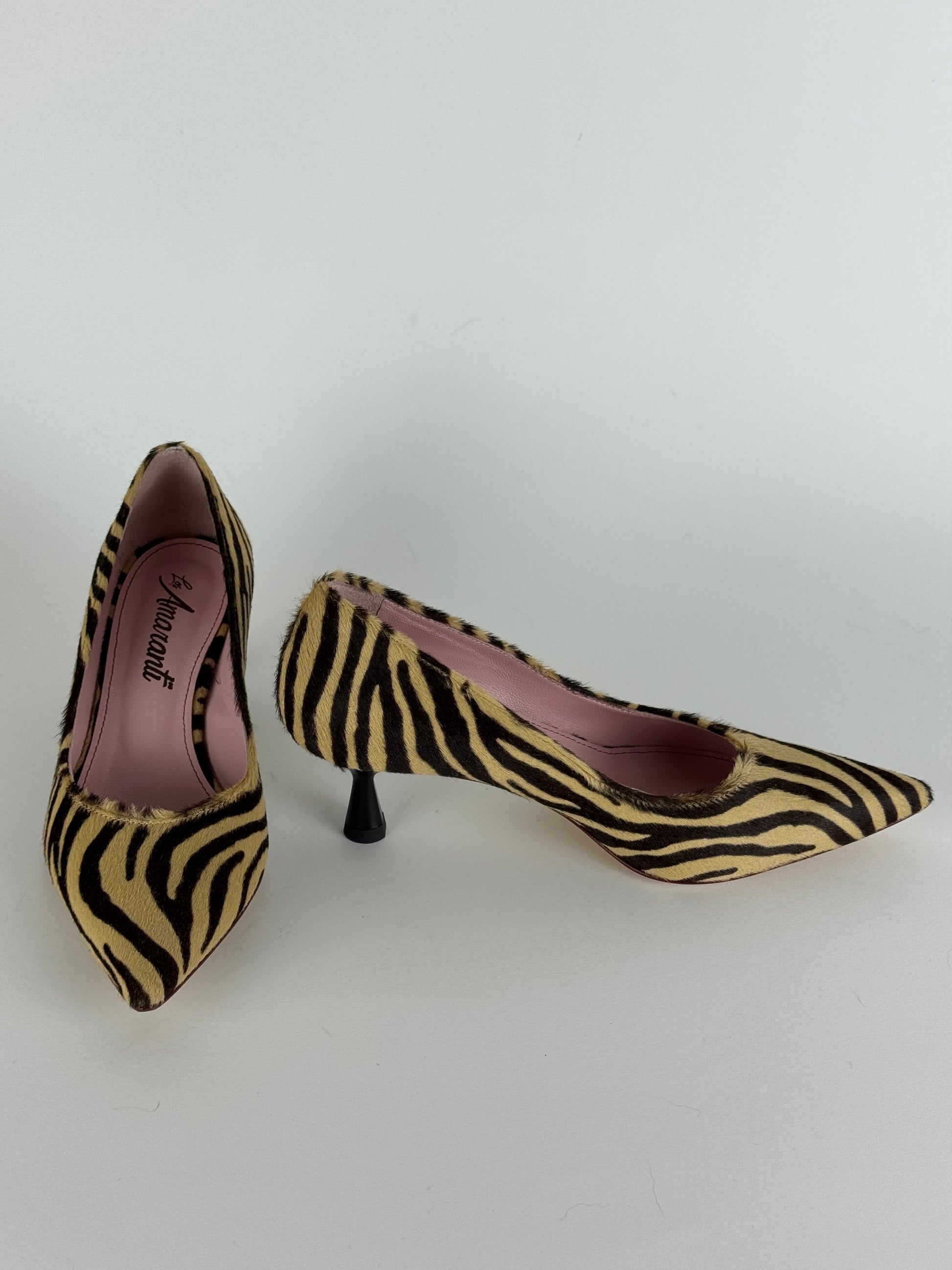 Les Amaranti è un capolavoro di artigianato, décolleté realizzato in raffinato cavallino, con tacco 5 cm è il connubio perfetto tra raffinatezza e praticità; per un look audace e trendy, questa fantasia zebrata è un'ottima scelta per abbinarla ad un outfit semplice o anche ad un completo total black.