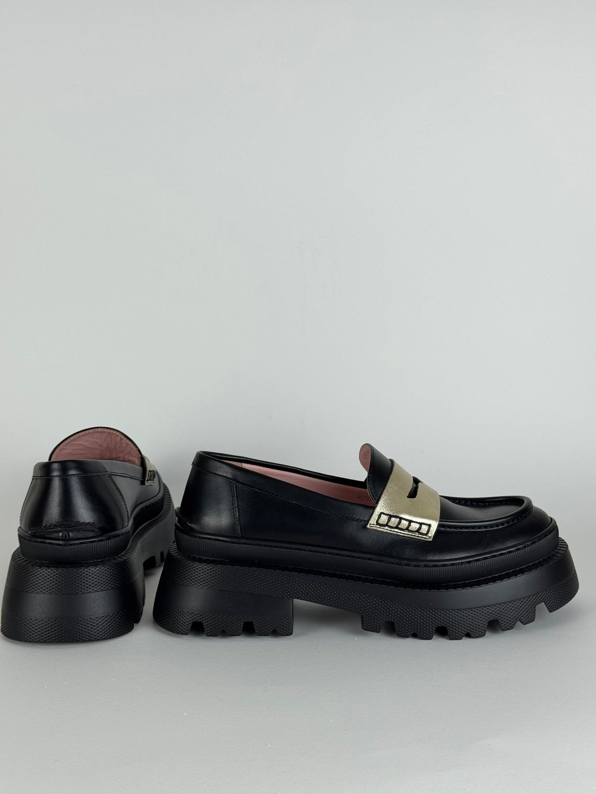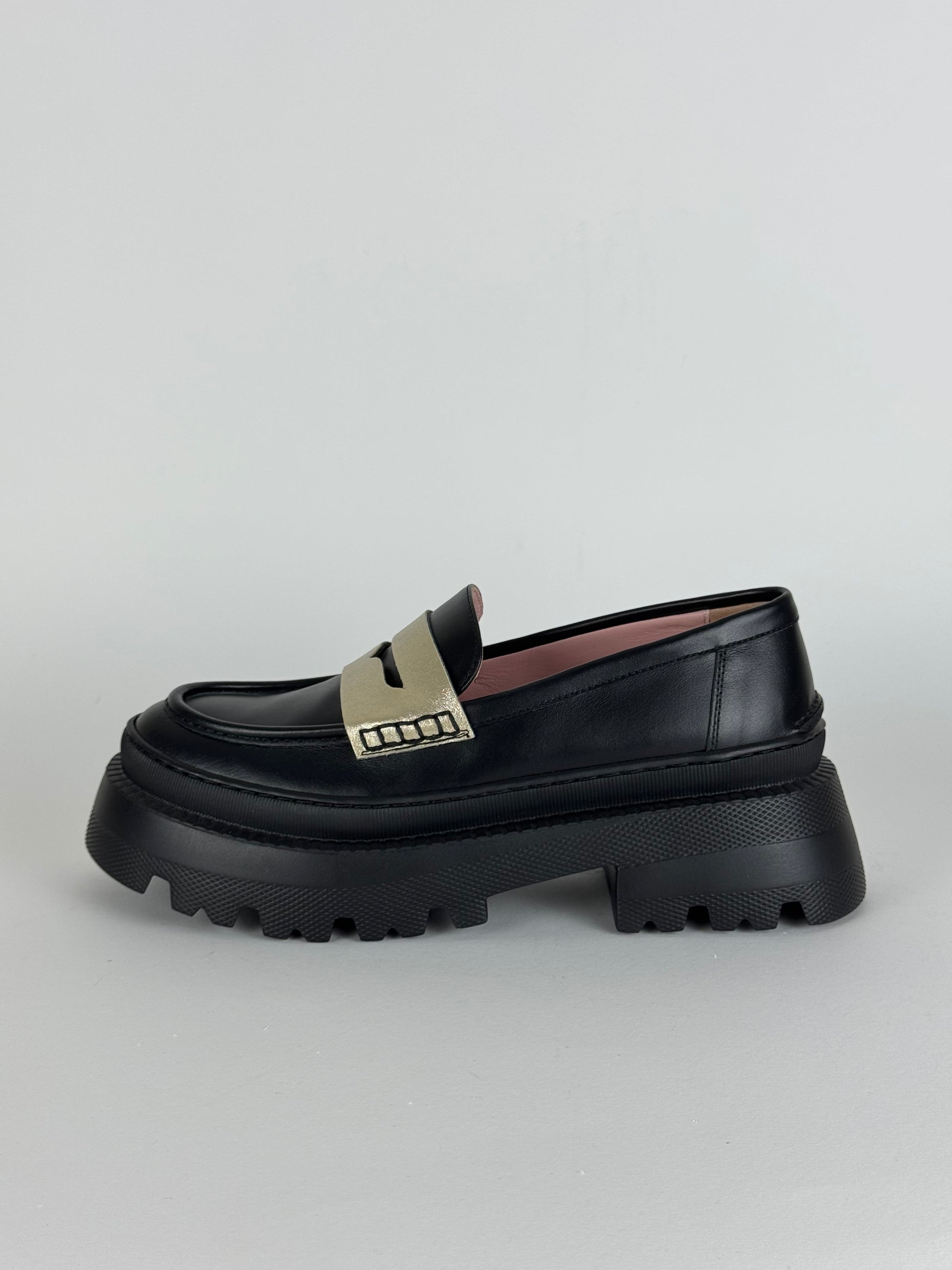 Il mocassino in vitello nero unisce la lavorazione artigianale con un tocco di modernità, pensato per chi cerca un accessorio versatile, elegante e robusto ma con un accento contemporaneo. La tomaia è realizzata in pelle di vitello di alta qualità, morbida e resistente. La suola è il vero punto di forza, spessa e solida ha un' ottima aderenza e una lunga durata infatti è pensata per chi cerca una scarpa che resiste all'usura quotidiana senza sacrificare lo stile e il comfort.