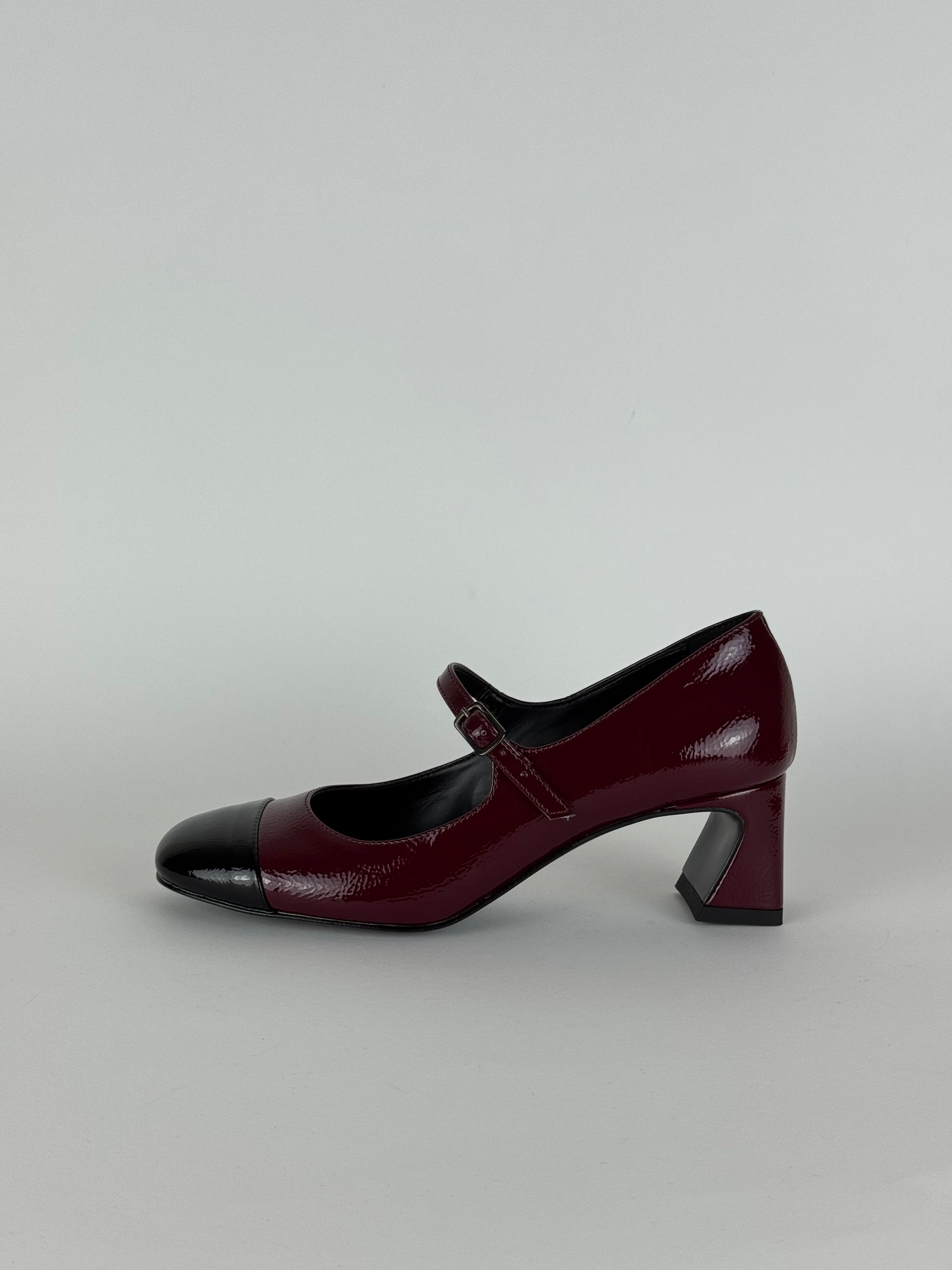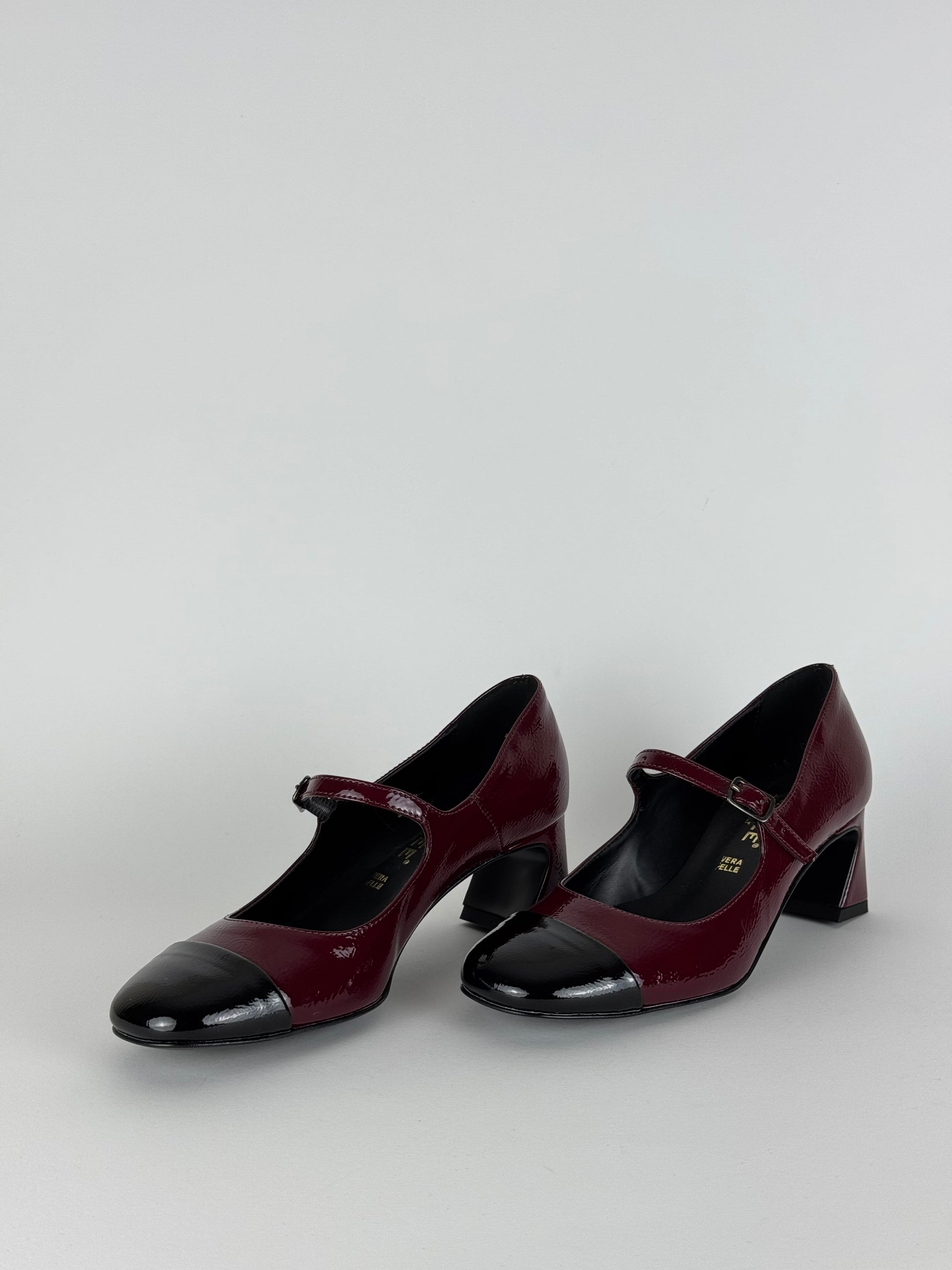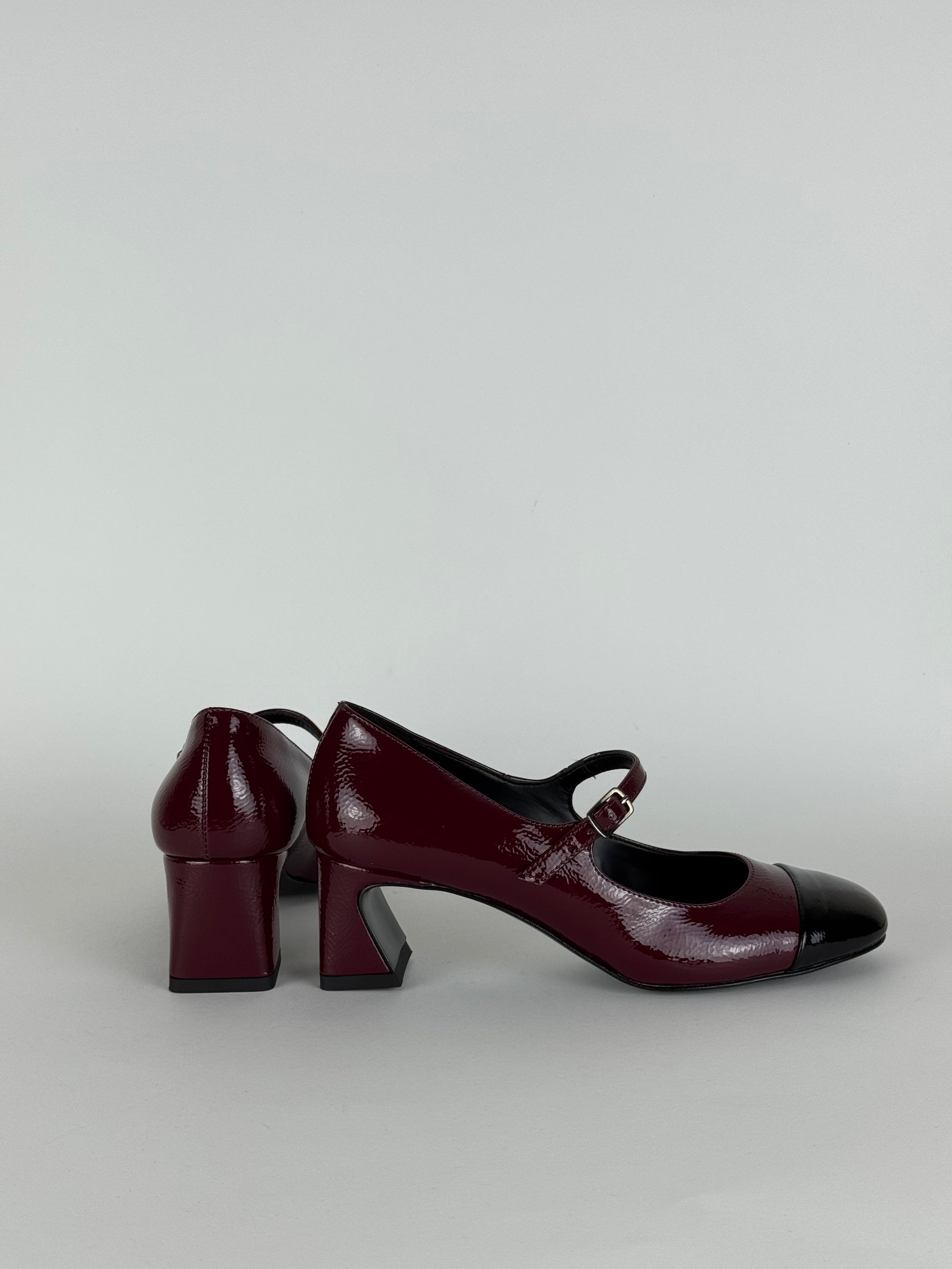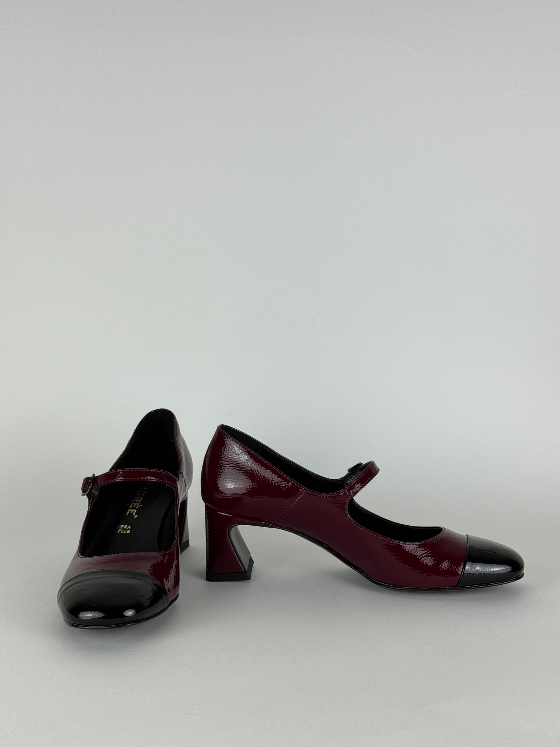 Mary Jane bordeaux e nera in ecopelle con cinturino