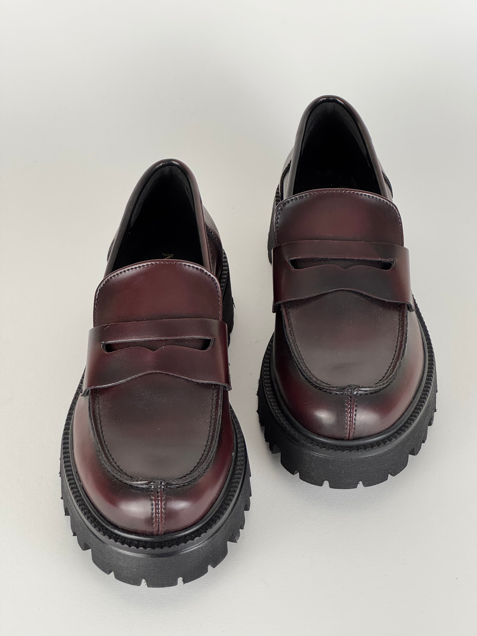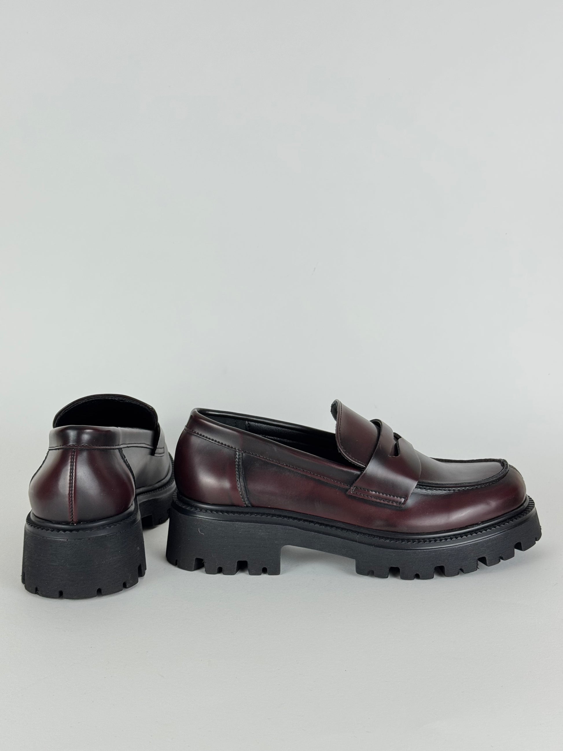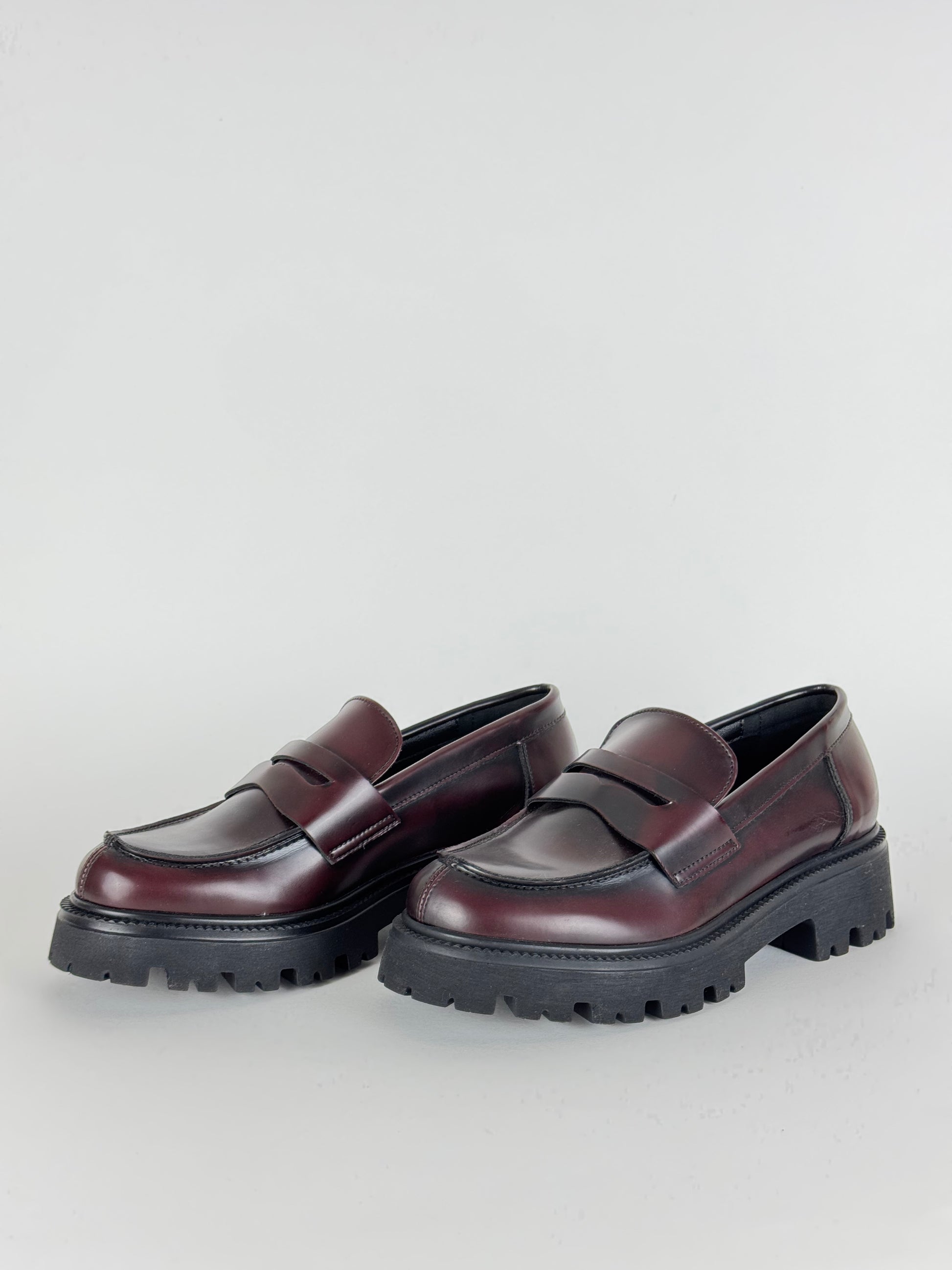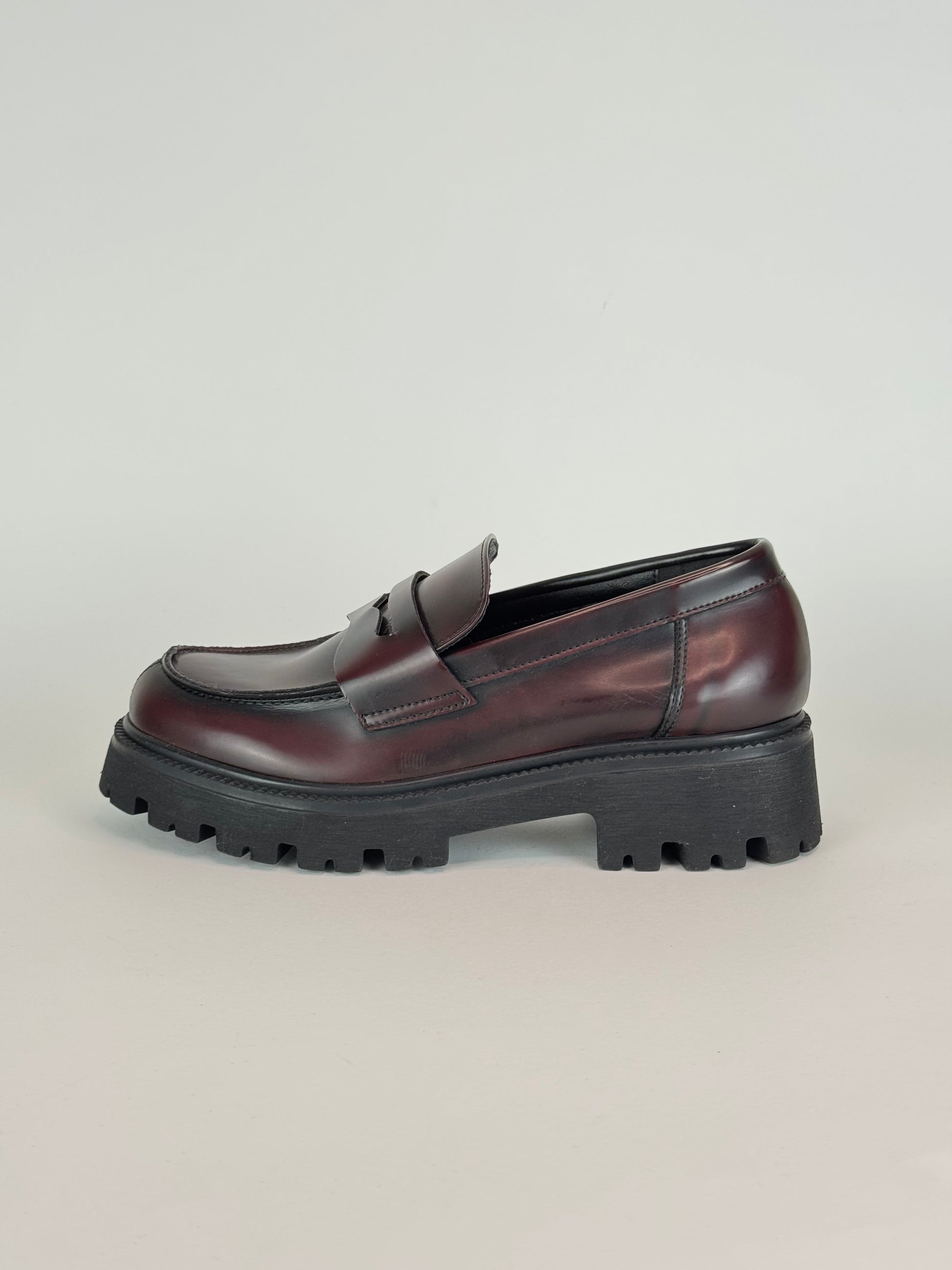 Mocassino Nacree realizzato in eco pelle bordeaux con suola in pelle.